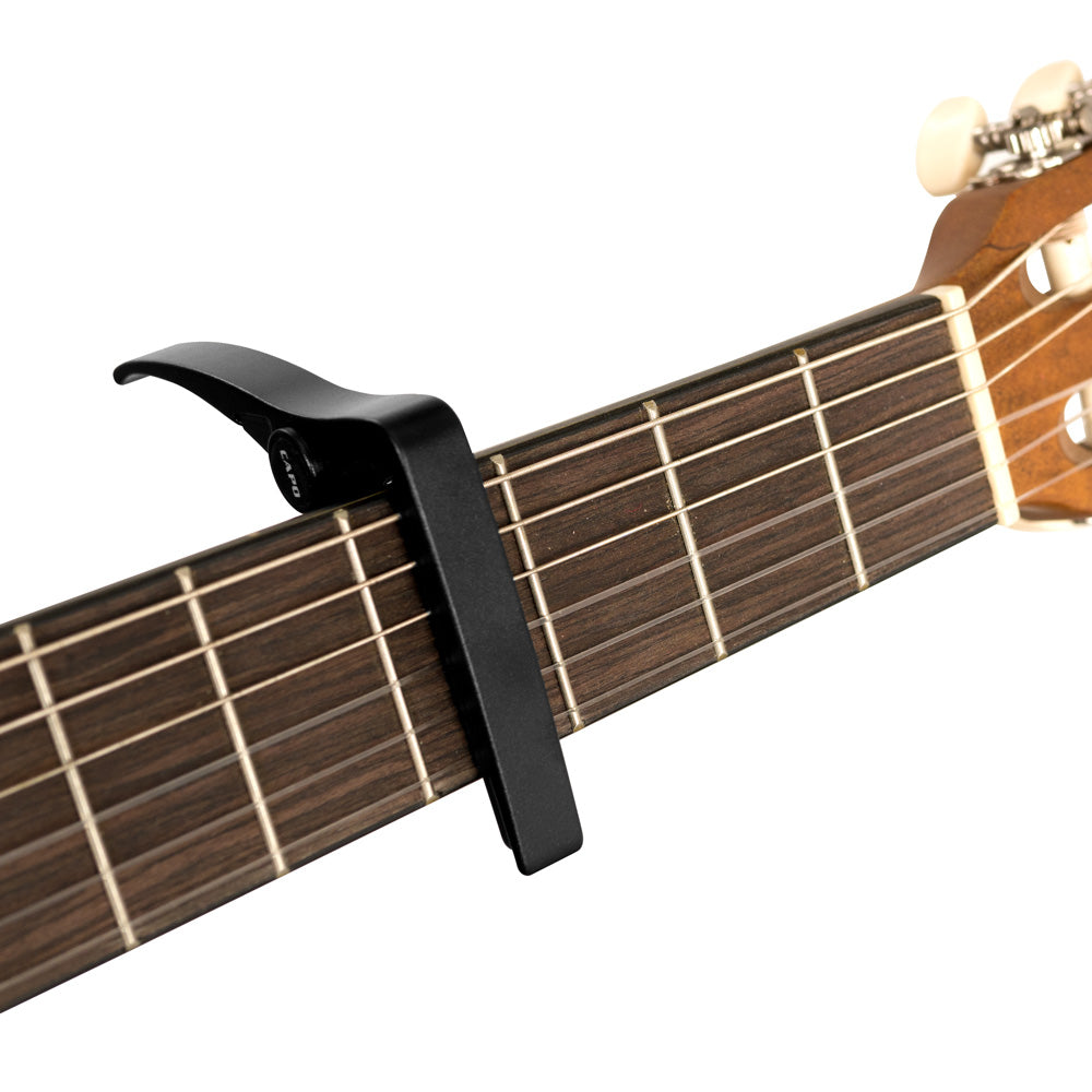 Ein Kapodaster ist ein unersetzliches Hilfsmittel für jeden Gitarristen. Mit ihm kann man z.B. die Tonhöhe der Gitarre an die Stimmlage eines Sängers anpassen, ohne den Einsatz komplizierter Barrégriffe. Damit der Kapodaster gut funktioniert, müssen Qualität und Bauweise stimmen, so wie beim Cascha Capo. Seine hochwertige Feder aus Qualitätsstahl sorgt mit otpimalem Druck für brillante Töne und eine perfekte Intonation beim Spielen. Die stabile Metallkonstruktion sitzt in jeder Lage perfekt und ist an den Auflageflächen mit Silikon beschichtet. So werden Hals und Saiten der Gitarre perfekt geschützt. Das Cascha Capo lässt sich mit nur einer Hand schnell und einfach anbringen und wieder abnehmen. Dieses Modell ist für klassische Gitarren mit Nylonsaiten (Konzertgitarren) geeignet.